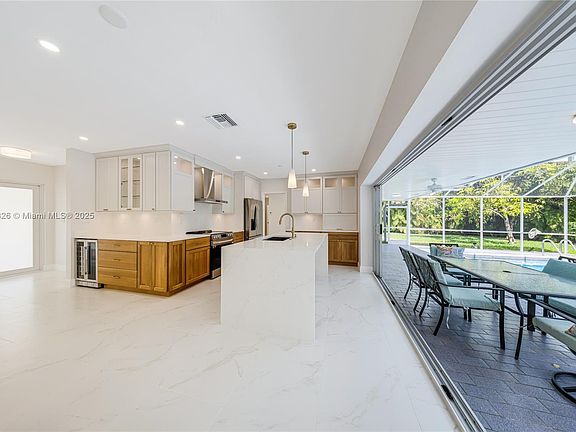 Completely remodeled with love and attention to every detail, this home is absolutely sparkling and ready for its new residents! Enjoy the bright kitchen/ dining/family area that can be completely open to your beautiful pool and garden, tastefully protected from falling leaves and mosquitos. Amazing porcelaine floors throughout, 4 spacious and light filled bedrooms, 2 modern bathrooms, each with access to the pool. Property features a garage and plenty of additional parking outside, hurricane proof windows, brand new appliances, including a wine cooler, extensive lighting. Exceptional quality for an unbeatable price.