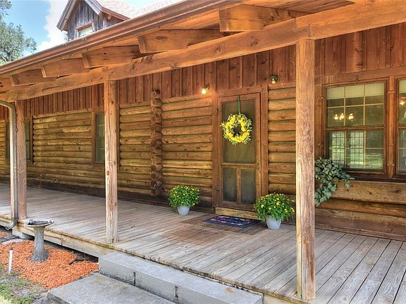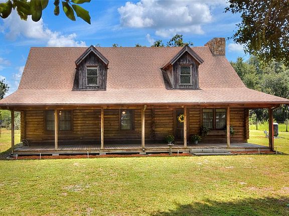 One or more photo(s) has been virtually staged. NO HOA......< SELLER OFFERING UP TO $7,000 TOWARDS BUYERS CLOSING COSTS> ATTENTION HOMESTEADERS, EQUESTRIAN ENTHUSIASTS, CABIN LOVERS, VACATION HOME, Welcome to your private country retreat! Nestled on 4.40 fully fenced acres, this AUTHENTIC LOG CABIN HOME blends rustic charm with modern comfort! With 3 Bedrooms, 2 Bathrooms, and an extra shower in the laundry room, this property offers both character and convenience. Step inside to soaring ceilings, exposed beams, and a stunning floor-to-ceiling fireplace that creates the perfect cozy gathering spot. The open kitchen features double pantries and flows into the spacious dining area with views of the property's oak trees. The upstairs loft-style primary suite boasts of double walk-in closets and a roomy bathroom, while the two downstairs bedrooms provide flexibility for family or guests. Enjoy Florida living on the expansive front porch spanning the entire width of the home or unwind on the oversized back porch overlooking the acreage. Unique features include inside kennels, a workshop space, and plenty of room for hobbies, storage, or animals. Bring your Horses or livestock and enjoy the freedom of country living--without sacrificing proximity to shopping, dining, and easy access to I-4 for commuting. This is more than a home; its a lifestyle. Don't miss this chance to own this rare Lakeland log cabin retreat!