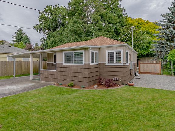 This lovely 1 bed 1 bath home lives large & light and offers a peaceful oasis. You will love the exceptional remodel & appreciate the well maintained condition of this charming rambler. Beautiful hardwood floors. Spectacular kitchen & bath. From the spacious living room enjoy the warmth from the free standing gas fireplace and picture window view of the garden & pond with water feature. The covered cabana w/hot tub offers relaxation in any weather. The garage provides a workbench & window lit laundry area, combine w/carport for 2 covered parking. New stainless steel appliances & lots of storage. Fully fenced front and back.