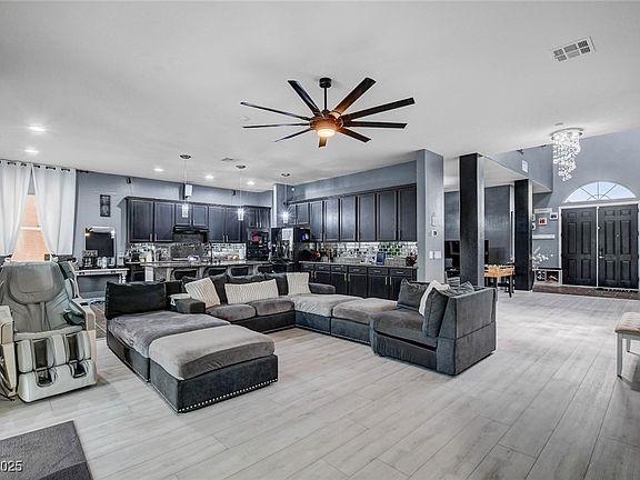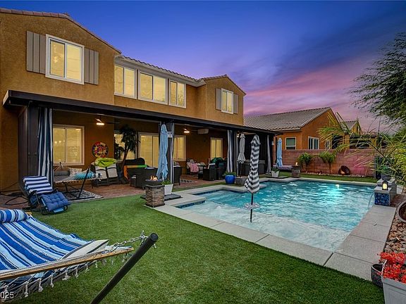 Located in a gated enclave of Mountain’s Edge, this spacious 4,211 sq ft home offers an exceptional layout with room for everyone. Featuring 5 bedrooms—including a convenient downstairs suite with its own bath—plus an office, loft, den, and oversized family room, the floorplan provides tremendous flexibility. High ceilings and natural light enhance the open-concept living areas, while the kitchen includes a walk-in pantry and plenty of storage. The private backyard is an entertainer’s dream with a sparkling pool and a covered, paved patio perfect for outdoor dining. The expansive primary suite includes a balcony with stunning mountain views. Additional highlights include a 3-car garage, one-owner pride of ownership, and a fantastic location close to parks, trails, and all that Mountain’s Edge has to offer.