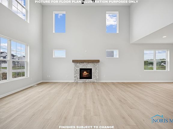 Brand New Buckeye Milan Floor Plan breathtaking home featuring a two-story grand foyer and living room with a cozy fireplace and massive windows on every wall, offering incredible natural light and a second-floor overlook. Side load garage on a corner lot for the perfect curb appeal. The first floor includes a private mother-in-law suite, perfect for guests. The owner's suite boasts a glass-enclosed shower & spacious walk-in closet. Enjoy the convenience of a second-floor laundry & 3 full bathrooms throughout. Relax on the covered porch! Pictures are for floor plan illustration purposes only.