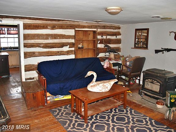 Historic 4 bedroom farm house on 2.25 acres. All the country charm essentials - front porch, exposed log wall, wood beams in kitchen, pellet stove! Flat, open property w/ 2 fenced acres, 2 story barn w/ stall and run in, workshop w/ work bench, storage shed. 20 minutes to Frederick. Motivated seller - cash/conv./203k.