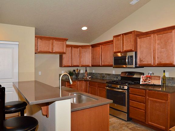 Great room concept with vaulted ceilings and a breakfast bar and open kitchen. This 3 bed 2 bath home is an efficient use of over 1400 sq ft. Large master with his and hers walk-in closets, double vanity, and separate toilet. This floor plan has lots of natural light and offers the convenience of single-level living.