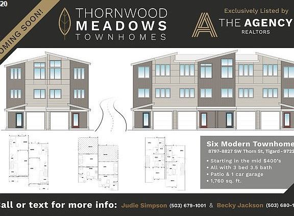 New construction! to be finished mod-December. Now's Lot's 5 & 6 are finished. Fabulous modern, 3 BD, 3 & 1/2 bath townhomes in close-in Tigard. Quiet convenient location! Main floor perfect for home office suite set up with full bath!? 2nd level has Kit., DN RM, Great Room w/gas fplc + 1/2 bath. 3rd level has 2 master suites with walk-in closets and utility room. Lot 1 PEN; Lot 5 & 6 now ready for pre-sale, taking Res'ns on all other units