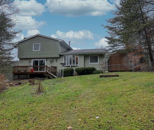There is also a whole house intercom/radio system,15 foot vaulted ceilings in the dining and front room.A large deck overlooking a peaceful backyard bordered