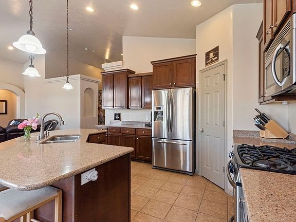 Beautiful rambler for sale in highly desired family friendly neighborhood. Huge open floor plan with three bedrooms plus an office room that can be easily used as a playroom or fourth bedroom. Three bathrooms, master bathroom has a large tub, shower and walk in closet. Mature trees, huge RV pad and back patio, tankless water heater, gas bbq, stunning view of the Oquirrh Mountains. Large three car garage, all gas appliances, security system, quartz countertops and more!