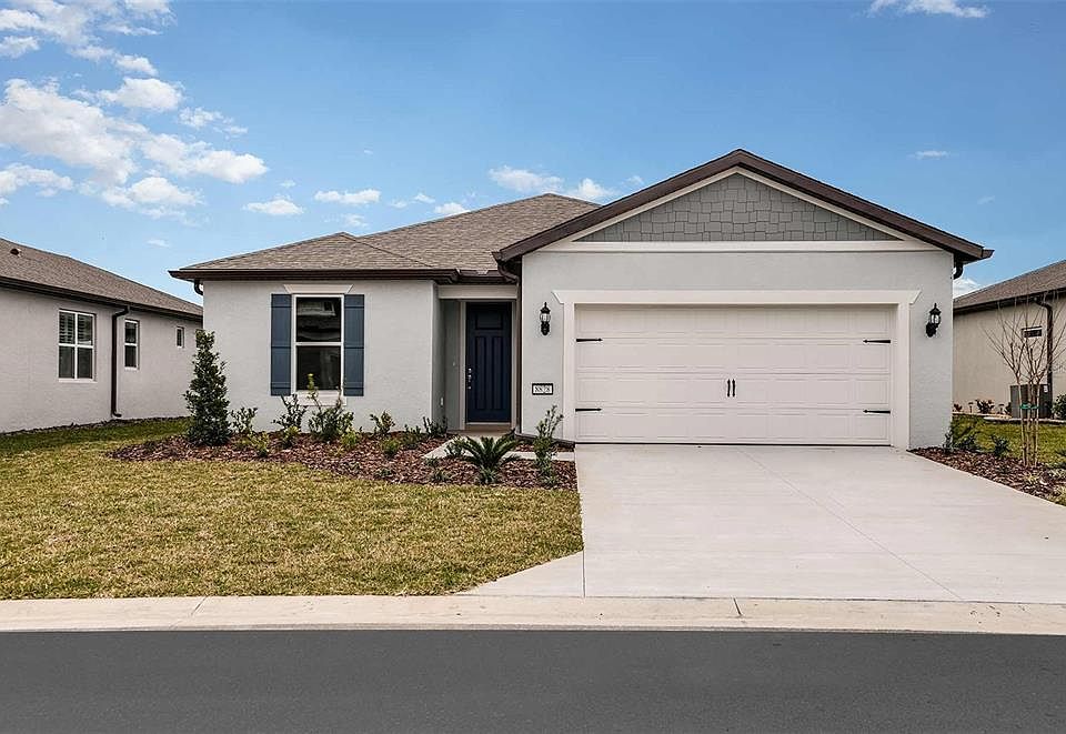 One or more photo(s) has been virtually staged. Enjoy all the benefits of a new construction home in the serene setting of Ocala, FL's horse country, with an age-restricted, fully amenitized lifestyle at Del Webb Stone Creek. This is the active adult community you've been looking for, with amenities that include an 18-hole championship golf course, a full restaurant and bar, indoor and outdoor pools, sports courts, and so much more. Our sprawling amenities, clubs, and classes will fill your retirement days with activities to make new friends and memories. Featuring the popular Mystique floor plan with an open-concept home design, this home has all the upgraded finishes you've been looking for. The designer, gourmet kitchen showcases a center island, quartz countertops with a 12"x14" tiled backsplash, a spacious pantry, and Whirlpool stainless steel appliances including a built-in oven and microwave, dishwasher, and stovetop with range hood. The Owner’s bath features a super walk-in shower, linen closet, private commode, and dual sinks. There is luxury vinyl plank flooring throughout with 18”x18” tile in the laundry and baths. This home makes great use of space with a versatile flex room, a convenient laundry room with a sink, countertop, and cabinets, an extended covered lanai, and a 2-car garage with a 4’ garage extension and an extra 10’-1”x15’-5” storage area. Additional upgrades and features include LED downlights and flat panel TV prep in the gathering room and a Smart Home technology package with a video doorbell. Call or visit today and ask about our limited-time incentives and special financing offers!