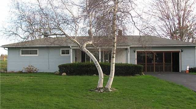 Well maintained 2 BDRM Ranch, set nicely back on large meticulous cared for property. Maintenance free vinyl siding w/newer windows. Kitchen boasts knotty pine cupboards & updated counters with island. Formal Dining Room w/ beautiful wood cased sliding glass doors leading to large 1 yr. old wooded deck. Open LVRM w/free standing oak fireplace & large picture window overlooking front porch. Two car garage w/new door & opener. Garage screen doors are installed for summer living. Paved driveway maintained and sealed w/turnabout. Separate laundry room.