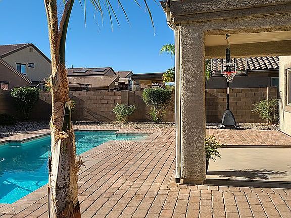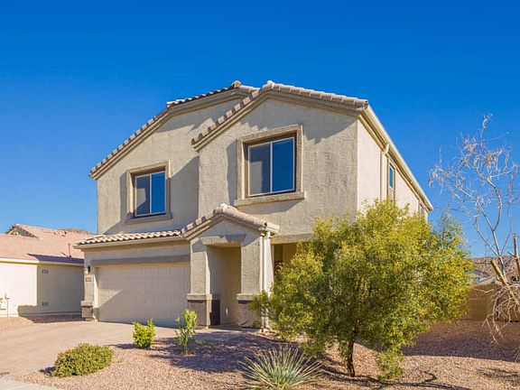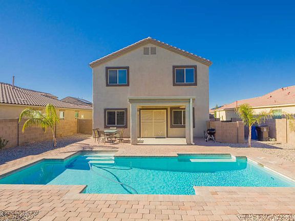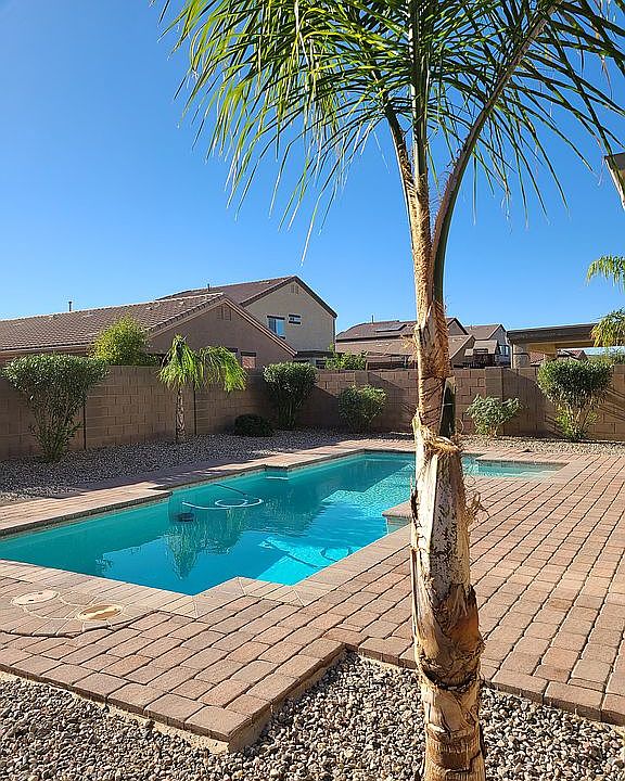 One of the few homes in Saguaro Bloom with a pool! Put this immaculate, move in ready home at the top of your list today! Downstairs you will find a full bedroom & bathroom with brand new wood plank tile. Large eat in kitchen with a peninsula bar & tons of storage, ceramic tile throughout the ground floor. Upstairs you will find a super sized loft with tons of room for a media room, office etc. Two more bedrooms (one with a walk in closet) a full bath & a spacious master suite with dual sinks & a super sized walk in closet. The large back yard complete with a contemporary pool, brick paver decking & plenty of shade is perfect for entertaining. Make this home yours today!