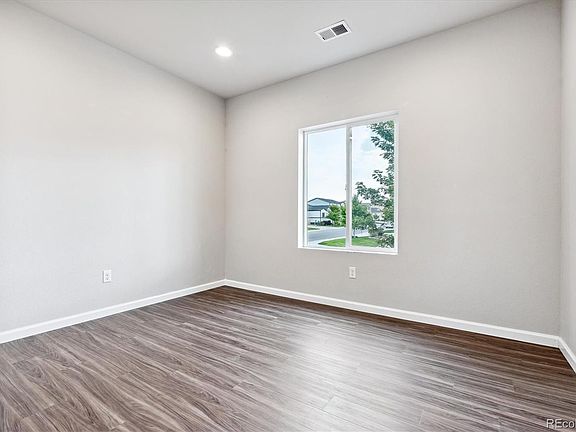 This stunning two-story home backs onto serene open space, offering privacy and beautiful views. The main level includes a guest bedroom with a full bath, ideal for visitors and a spacious study on the main floor perfect for remote work. The kitchen features a generous island with granite countertops, stainless appliances including a gas stove for those who really know how to cook, upgraded Timberline cabinetry, and a large pantry for extra storage. Luxury plank flooring flows throughout the entire home. The open banister leads to an expansive loft upstairs, ideal as a second living room or play space. The master suite includes a four-piece bath with granite countertops and an oversized walk-in closet. The upstairs conveniently located laundry room comes with energy-efficient washer and dryer. Just a short walk to Clem Dufour Park and splash park, and minutes from I-25 for an easy commute!