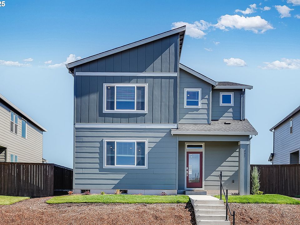 This new construction home is move-in ready and located in a serene community surrounded by protected wetlands and walking distance to several local parks and trails, with easy access to Fern Ridge Lake, grocery stores, schools, and restaurants. The McKenzie plan features a spacious two-story design with an open first floor including a large kitchen island, dining nook, and fireplace. Interior highlights include quartz countertops, shaker-style cabinets, LVP flooring in the kitchen and entry, LVT flooring in the baths, two-tone interior paint, fencing, and landscaping with irrigation. This home also includes central air conditioning, a refrigerator, washer and dryer, and blinds—all at no extra cost! Located on homesite 5, this home is move in ready! Rendering is artist conception only. Photos are of a similar home, features and finishes will vary. Below-market rate incentives available when financing with preferred lender.