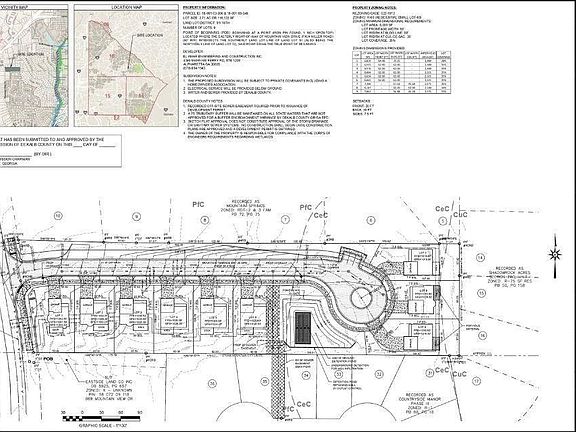 This is the development opportunity serious builders compete for. Located just minutes from Memorial Drive and major retail corridors, this prime 2.71-acre tract is fully approved for a 9-home gated subdivision and positioned in a market where new construction, within a 2-mile radius, is selling between $450K–$500K. This creates an excellent environment for builders seeking steady buyer demand and strong resale values. The property includes a total of **2.71 acres, comprising the main parcel at 883 Mountain View Dr and an adjacent 0.53 portion at 875 Mountain View Dr. All acreage is combined into one offering for a 9-home approved subdivision. The site offers both privacy and desirability for future homeowners. All easements have already been recorded with DeKalb County, ensuring clear development and utility placement. Convenience is unbeatable — the property is approximately 3.5 miles from Walmart, Publix, and The Home Depot, offering quick access to daily essentials and major building supplies. Recently rezoned from R75 to R60, the property includes a comprehensive development package, allowing builders to move efficiently through the next steps: Full Survey Legal Description Three Architectural Home Plans (A, B & C) Sewer Easement Documentation Rezoning Approval Ready for Land Disturbance Permit (LDP) Submission All development documents are available for immediate review, ensuring a seamless due diligence process. With buildable land becoming increasingly scarce and new construction sales in the area remaining consistently strong, this is a rare opportunity to secure a near–shovel-ready project in a high-demand pocket of Stone Mountain. Opportunities like this do not last. Bring your builder and break ground with confidence.