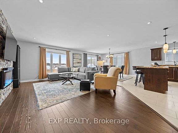 Discover this beautiful 4-bedroom bungalow, located in Limoges, built in 2014 and maintained in pristine condition. Thoughtfully designed with comfort and style in mind, this move-in ready home offers an open-concept layout, elegant finishes, and modern updates throughout. The heart of the home is the spacious kitchen, featuring rich wood cabinetry, ample storage, stainless steel appliances, and a large island perfect for entertaining. The bright dining area flows seamlessly into the inviting living room - ideal for family gatherings and everyday living. The main floor hosts two well-sized bedrooms, including a serene primary suite filled with natural light. Downstairs, the finished lower level offers a generous family room, and two additional bedrooms, a full bathroom, and a versatile flex space - perfect for a home office, gym, or playroom. Step outside to enjoy your private backyard oasis, complete with a new fence (October 2024) and a large deck (2023) - ready for summer barbecues or quiet evenings under the stars. Located on a quiet street in a family-friendly neighborhood, you're just minutes from schools, parks.