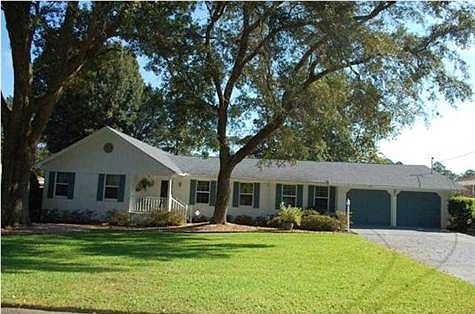Lovely traditional home situated amidst shady established oaks and on the golf course as well! Sits among other well taken care of homes in Scenic Hills Country Club subdivision. This one owner home has been well loved and maintained...even has COPPER WIRING per the Sellers...so no worries there! Has ALL new thermal windows throughout the home rated for 140 mph winds. Roof replaced end of 2004. Upon entering the home you will be greeted with the warmth of wood throughout foyer, hall and family room area. To right of foyer upon entrance is a large formal living room area as well as a formal dining room. As you exit the foyer you will come into a charming family room with a wood burning fireplace. It is open to the kitchen with a sunny breakfast nook overlooking the lushly landscaped backyard complete with white picket fence! There is a very spacious porch with a swing just waiting for the new owners to sit and enjoy nature...rabbits, squirrels, birds....beautiful plants, ferns, river birch tree, brush bottle tree, flowering vines....this very peaceful garden type setting is a retreat in and of itself! (Yard does have sprinkler system. )You can also enter the porch area from the French door off of family room. The family room has a fireplace just waiting for your Christmas stockings to be hung! Also has built in shelving for your books or collectibles. The kitchen has been updated with solid surface countertops, undermount sink and some new appliances as well. Tiled flooring. Y