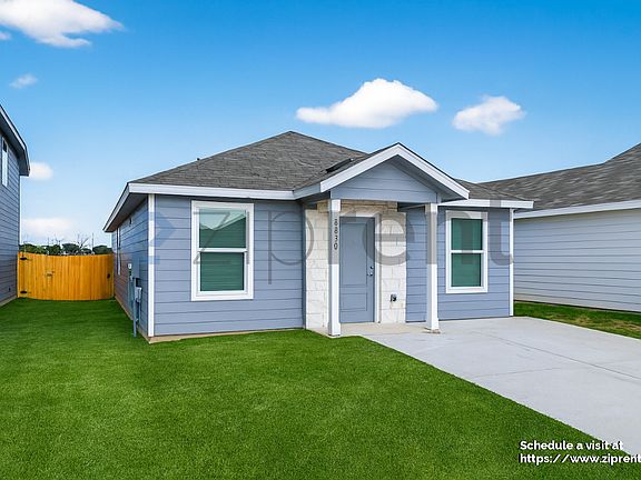 Welcome to your new home at 8830 Pyron Place in San Antonio, TX. This brand new, never used before single-story residence offers a contemporary design with a welcoming exterior featuring a blend of stone and siding. As you step inside, you'll be greeted by a bright and airy open concept living space that seamlessly connects the living room, dining area, and kitchen. The kitchen is equipped with modern stainless steel appliances, sleek countertops, and ample cabinet space, making it perfect for both cooking and entertaining.