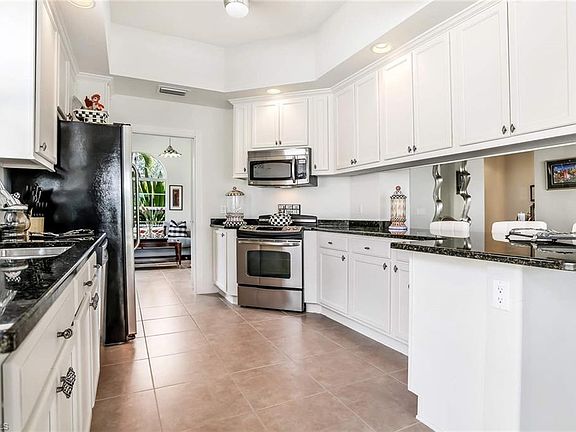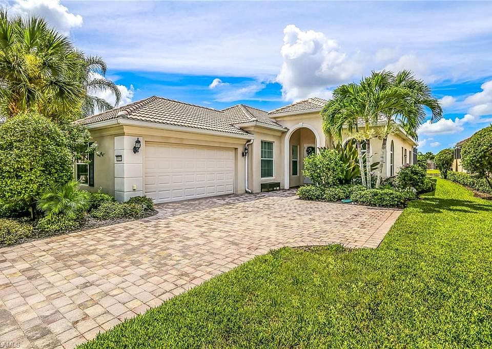 This highly-coveted "Oakmont" model features beautiful Southern-facing water views perfect for relaxing in your pool and spa. Featuring 3 Bedrooms plus Den and an open-concept, spacious floorplan that provides ease for entertaining. In the kitchen, you will find upgraded stainless steel appliances, dining area, or enjoy your morning coffee casually at the counter bar. This home is meticulously maintained, with updated custom built-ins, and is offered with negotiable furnishings for an easy move. Verona Walk is a unique community with an on-site restaurant/bar, hair salon, gas station, post office, and car wash. There are miles of walking/jogging, as well as tennis courts, bocce, pickleball, and fitness center for your busy, active lifestyle. Throughout your time here you can also take part in many community events to meet your neighbors and settle into Naples living. There are 4 public golf courses within an 8-mile radius, restaurants located just outside the entrance and beyond, grocery stores and shops within 3 miles and less than 13 miles to both Naples and Marco Island Beaches.
