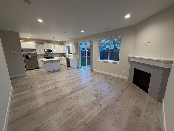 Beautiful new home with 4 bedrooms, 2.5 bathrooms, 2 car garage. Home features a great room with gas fireplace, 9ft ceilings on main level, quartz countertops throughout, gas range, a primary suite with walk-in closet, heat pump with A/C, front yard with irrigation, on a fully fenced lot! Community features walking trails, green spaces, and park areas.