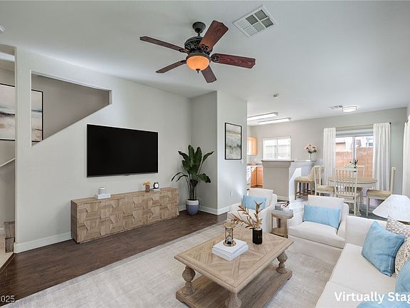 Step into your dream home in Las Vegas's buzzing Southside, located in the gated community of Arlington Ranch! This pristine townhome offers not just a home but a lifestyle. Dive into community perks with pool, playground, BBQ area, and scenic trails. This home features 2 spacious bedrooms, each located upstairs with its own en-suite bath and walk-in closet. A convenient lower level 1/2 bath for guests. The seamless floorplan effortlessy connects the living room, dining area & kitchen, all enhanced by new engineered hardwood floors. The kitchen offers a walk-in pantry, Reverse Osmosis filtering system, eat-in bar, and gas stove. Step outside to your fully fenced private backyard. The attached 1-car garage includes extra storage space and water softener. Close to Exploration Peak Park, shopping, dining, and just minutes from the popular Durango Station, the Uncommons, Allegiant Stadium and Harry Reid airport. Great starter home or ideal investment property. This gem won't last long!