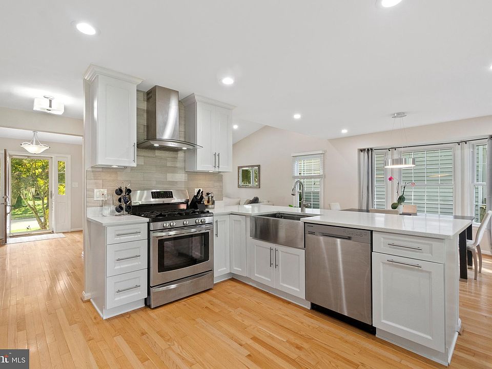 Please enjoy this 4 bedroom, 3 full & 1 half bath, 3200 sq.ft. upgraded house in the Lakewood Hills section of West Springfield. This house will provide its new owner with a desirable, yet rarely-found combination of upgrades throughout the house, including a fully renovated, open kitchen, a flat fenced rear yard, and location. The house opens to a Living Room with a vaulted ceiling. The Living Room then opens to the Dining Room and the Kitchen. The latter is the star of this house, with the open layout, large Quartz peninsula that easily seats three people, upgraded cabinets, stainless appliances, and tile backsplash, all done in an eye-pleasing transitional design. The kitchen looks out to the backyard through a bank of three windows, with space for a separate eating area. Recessed lights have been added throughout the main living level. Three walls of windows flood this level with natural light. Stairs lead up to the bedroom level, with four bedrooms, each sized to easily fit a Queen bed. The primary bath and full bath in the hall have each been fully upgraded re vanity, vanity top, tile, and accessories. The Family Room is just four steps from the main living level, with this large space having a wood burning fireplace and a fully upgraded half bath. The paver patio and rear yard are accessed through French doors. The Family Room also provides access to the 2-car garage. From the Family Room another set of stairs leads to the fully finished basement, which has space for a play area, an office set up, and a 5th bedroom (non-legal with casement window) with an upgraded en suite full bathroom. The laundry is also located on this level. Outdoor livability is provided via the large paver patio and the fenced rear yard that is both flat and spacious enough for play. The front porch also provides space for a relaxing view of the front yard. The HVAC is a Carrier system. The hot water heater is a 2017 install. The roof and windows were replaced in 2010.
