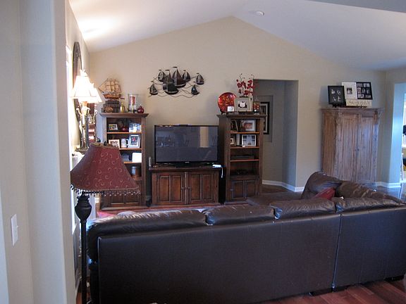 Great Rambler in Eagle Point Gated Community with Beach Access to American Lake. This home has 2 bedrooms, plus a den that could be used as a 3rd bedroom. The home features vaulted ceilings, hardwood floors and a gas fireplace in the living room. The dining room has hardwood floors and french doors that lead to the back patio. The master bedroom has a private 5-piece bath with a walk in closet. The kitchen features hardwood floors, stainless appliances, granite counter tops and breakfast bar. Washer/Dryer Hook-ups. This home accepts one small pet with non-refundable pet fee. Tenant is responsible for all utilities. Electric, gas, water and garbage.