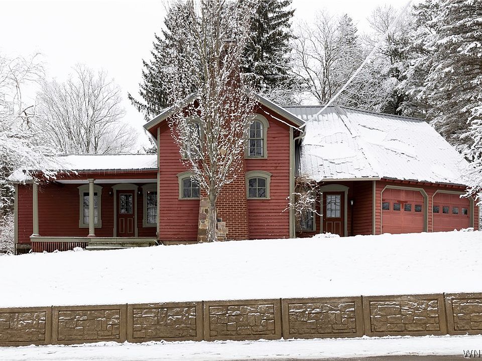 Covered front porch welcomes you to this incredible and unique charming home in the heart of Colden Country complete with a bird's eye view of the fireworks on the 4th of July!Used brick,old-fashioned lamps and carefully chosen pieces add to the country charm. This home was featured in Buffalo News Home/Living section 1982. 3bd/2bath. 3 woodburning fireplaces+a woodburning stove. Beautiful hardwood floors and exposed beamed ceilings. Familyroom with cozy brick fireplace, bay window with window seat viewing private deck and courtyard. Kitchen with inlaid hardwood floors, cherry hardwood cabinets, woodburning stove and sliding glass doors to courtyard. Mastersuite with cathedral ceiling, woodburning fb and glass door to balcony.1st fl laundry. Beautiful stained glass. Approx.1847 sqft+an additl 918 sq ft of storage space per recent appraisal.This home is drenched in sunlight! 2nd floor has been completely updated. The views from this home are simply beautiful. 2 car attached garage plus 2 car detached garage with loft (216x175). Walk to town park, local restaurants and shops. Close to Spraguebrook Park and Kissing Bridge. Easy access to Rt 219. Showings begin Jan. 30