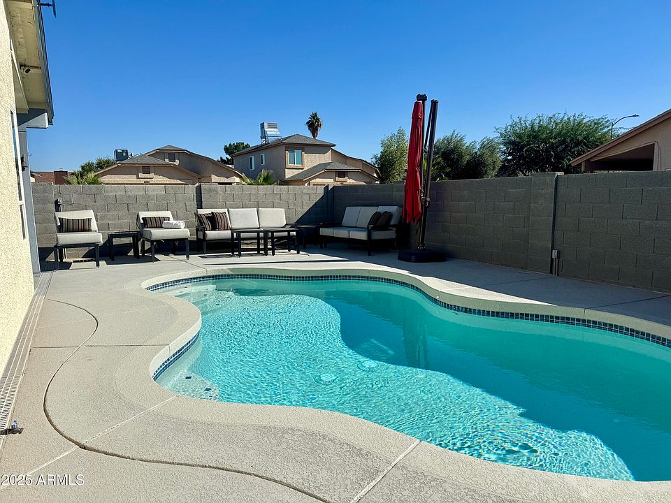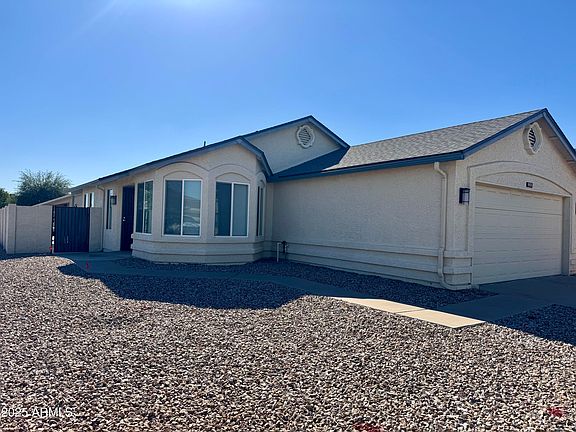 Beautifully maintained single-level home in a prime Peoria location! This 3 bed, 2 bath rental offers an open floor plan w soaring ceilings & plenty of natural light. The spacious great room flows seamlessly into the eat-in kitchen, featuring newer cabinetry & breakfast bar seating. The primary suite includes a walk-in closet & private ensuite bath. Two additional bedrooms provide flexibility for guests, work-from-home space, or hobbies. Neutral paint and tile/laminate flooring throughout make for easy care & a modern feel. Step outside to a private, low-maintenance backyard perfect for relaxing or entertaining. The sparkling pool can be heated making use of the refreshing pool year round! Additional features include an attached 2-car garage, indoor laundry & all appliances included.