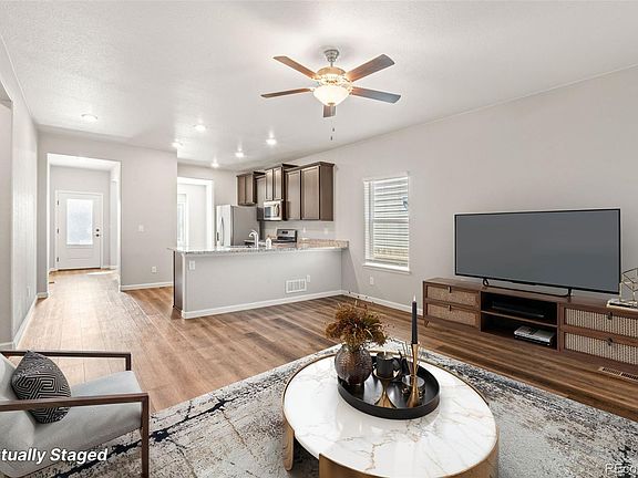 You do not want to miss this immaculate 3-bedroom, 2-bath ranch home in the heart of this quiet Commerce City neighborhood. Pride of ownership shines through in this meticulously maintained home ready for you to move right into with low HOA fees. This open layout features luxury vinyl plank flooring throughout and tons of natural light flooding into the space. The gorgeous kitchen provides ample wood cabinetry, stainless steel appliances, granite countertops and an extended counter for additional seating. Relax and unwind after a long day in your primary oasis with a sleek and updated 5-piece full bathroom and walk-in closet. Rounding out the main floor are two additional bedrooms and a second full bathroom. You will love the low-maintenance, fenced backyard perfect for entertaining accented by a covered patio. Conveniently located with easy access to E-470, Pena Blvd, and I-70 making the Denver International Airport mere minutes away. Centrally located just minutes from Fronterra Park, Second Creek Open Space, Reunion Recreation Center, Second Creek Elementary, Stuart Middle School, and all of the shopping and dining centers that Reunion has to offer! This house is ready to be your home - call to schedule your private showing today!