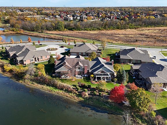 There's a rare calm that comes with life by the water. The quiet stillness of early mornings, sunlight sparkling across still surfaces, and evenings that fade into painted skies. This turn-key, beautifully updated 2-bedroom + loft, 3.5-bath townhome in Lighthouse Pointe captures that sense of peace and connection, blending thoughtful design with effortless comfort. Inside, the two-story living room welcomes you with warmth and natural light, featuring hardwood floors, a granite-surround fireplace, and tall windows framing serene water views. The custom kitchen was curated with both style and intention, offering quartz countertops, a striking herringbone-pattern stone backsplash, stainless steel appliances, a composite sink, pantry closet, and soft-close cabinetry. The adjoining dining area opens to the patio through oversized sliding doors topped with a transom window, creating a seamless transition between indoor comfort and outdoor tranquility. A formal dining room, currently styled as a sitting area, adds flexibility and sophistication with hardwood floors and a tray ceiling. The main-level laundry room, complete with a sink and storage, adds convenience to daily living. Upstairs, the primary suite feels like a private retreat with vaulted ceilings, dual walk-in closets featuring custom organizers, and a spa-inspired bath with a whirlpool tub, separate shower, and granite double vanity. The loft provides an ideal space for work, reading, or quiet reflection, while the second bedroom enjoys gentle morning light and peaceful water views. The finished basement extends your living space with a recreation area/workout area, a full bath with heated floors and a double walk-in shower, plus a utility room and additional area for future expansion along with abundant storage space. This home has been meticulously maintained and offers maintenance-free living, with landscaping and snow removal fully managed so you can truly relax and enjoy the setting. Outside, the concrete patio invites you to unwind beneath the open sky, perfect for morning coffee, sunset gatherings, or simply a moment of stillness at the end of your day. Ideally located near Starbucks, scenic walking paths, and with access to Old Plank Trail, this home offers a tranquil waterfront lifestyle that combines natural beauty, everyday convenience, and easy access to major expressways for commuters.
