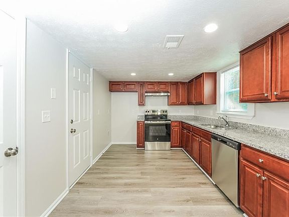 Stainless steel appliancesGranite countertopsFresh interior paintStained cabinets