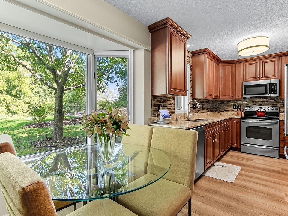 Welcome to this charming 3 bed 3 bath Mendota Heights home. This end-unit townhome features a spacious main level with a bright kitchen, complete with wood cabinetry, granite countertops, and stainless steel appliances. Start your day with breakfast in the eat-in nook or seated by the cozy fireplace in the living room. Upstairs, natural light from a skylight brightens the main hallway, which leads to the spacious primary suite. This primary suite is complete with a beautiful bathroom creating a relaxing private space. Step outside to the patio, perfect for entertaining and enjoying the fresh air, or settle into the three-season porch to enjoy the outdoors bug-free. The property also includes access to valuable community amenities, such as a pool for hot summer days and expansive clubhouse. The home is complete with a practical 2-stall attached garage with extra cabinets for easy access and additional storage. Don’t miss your chance to call this beautiful Mendota Heights property your home!