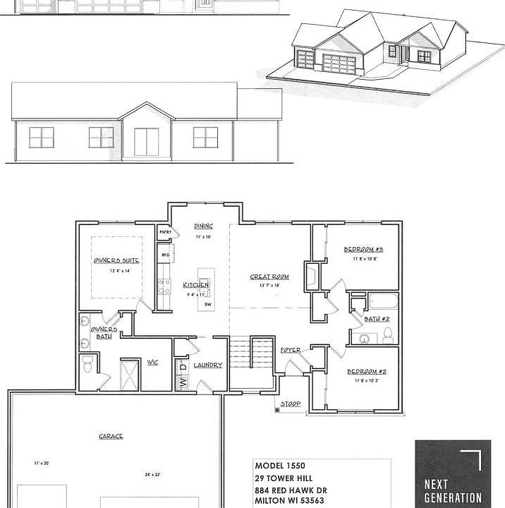 Estimated Completion Date February, 2026...Quality New Build by Next Generation Construction in Milton's popular Tower Hill subdivision! Beautiful Split Bedroom Ranch w/ 3-car attached garage! Open concept w/ White doors & Trim throughout, Large Great room w/ Vaulted ceiling & Gas Fireplace! Spacious Eat-in kitchen w/ Separate dining area, Center Island, Quartz counters, Pantry, Stainless appliances & Soft close cabinetry! Main level laundry/Mudroom! Primary suite w/ Tray ceiling, Walk-in closet, Double vanity & Walk-in shower! Lower level is Studded, Insulated & Roughed-in for future bath plus Egress window for possible 4th bedroom. Great location & Curb appeal!!! Yard will be left with a fine grade & seed...Lot #29 Tower Hill