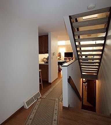 TUCKED AWAY! Spacious Townhouse in relaxing and quiet neighborhood. Lots of Natural light beams into this 2 bedroom/lofted townhouse with carport. Walkout basement to easy access patio. Nice Deck overlooking the lawn area. All appliance stay and very low utilities make this very affordable living.