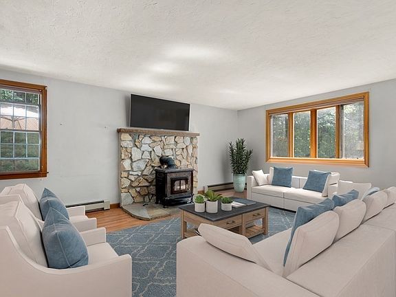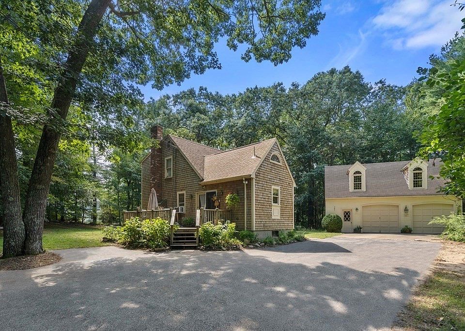 Welcome to Hanover! This charming home is nestled on a private 2.47 acre lot set back from the street offering the utmost privacy and tranquility best enjoyed on the spacious deck. The home has an open floor plan kitchen and living room with fireplace and wood stove offering plenty of space for cooking and gatherings. The upper level consists of two cozy bedrooms and a full bathroom. There is a two car garage with high ceilings, full sized staircase, and living space waiting to be finished to your liking. It is conveniently located on Route 123 and in close proximity to Route 3 and Route 53 making travel to Boston and beyond effortless. The most recent updates include a new furnace and water heater in the past two years and a newer roof installed 10 years ago. Hanover offers countless scenic trails and parks to explore nature including Forge Pond Park, B. Everett Hall Field and Park, Ellis Field, and Luddam's Ford.