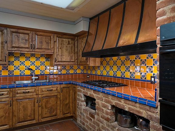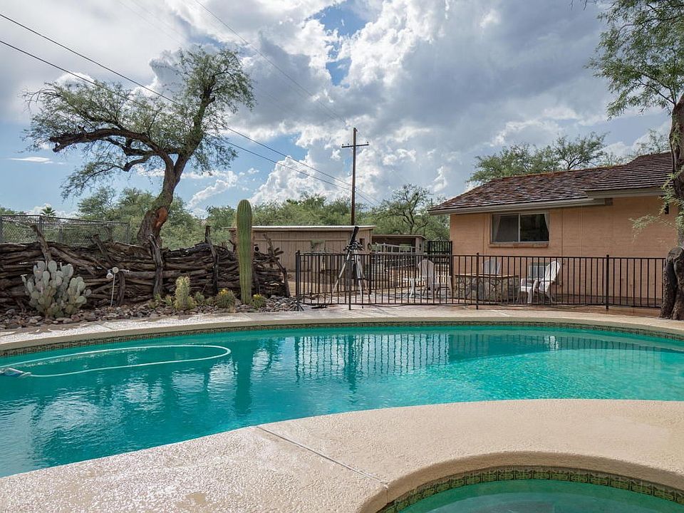 Charming burnt adobe home with pool, landscaped low care yard & horse facilities. 3BR/2BA main house plus 1BR/1BA guest suite that includes kitchenette & walk in closet. 3180 sq ft on nearly an acre in a private neighborhood. Solid brick flooring, rough wood beamed ceilings, & large flagstone fireplace. The kitchen adds to the comfy atmosphere w/ knotty alder cabinets, beautiful copper hood, & rustic country brick accents. Enjoy mountain views from your large picture windows. Vaulted pine ceilings & Saltillo tile in spacious family room. Generous covered patio with numerous sliding glass doors for easy access. Pool, spa, built in BBQ, & fire pit make entertaining easy. Also a large tack room, storage area, & tree house.