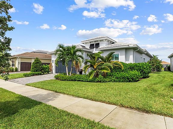 GORGEOUS LAKEFRONT HOME IN PGA VERANO! Featuring 3 spacious bedrooms, 3 full bathrooms, and office space. Upon entry you'll notice the volume ceilings, gorgeous wood laminate flooring, and open-concept living areas. Eat-in Kitchen features quartz counter-tops, upgraded cabinetry, farmhouse sink, and stainless appliances. Primary suite has a large walk-in closet, and frameless glass shower. Complete with IMPACT windows, spray-foam insulation, automatic remote shades, screened-in patio, extended paver patio, and fenced in yard with stunning vegetation! Enjoy resort style living with a 27,000 sq ft Club Talavera Social Center PLUS fitness center. Benefits include an indoor lap pool, outdoor pool, tennis courts, and South Florida's largest private pickleball center, featuring 27 courts.