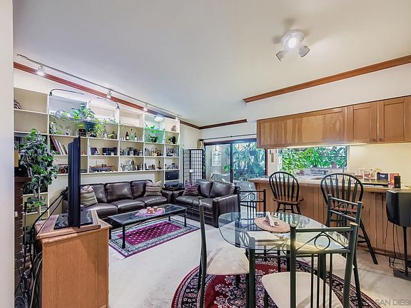Experience the magic of Utc, La Jolla living in this rare top-floor, one-level residence within the sophisticated Boardwalk complex. Located just over the hill from world-famous La Jolla beaches, this home offers the close residential proximity to the exclusive UC San Diego campus. Step into a lush paradise with high vaulted ceilings and a thoughtful open floor plan that creates a sense of airy spaciousness. A pass-through breeze from the north and south keeps the home feeling fresh and cool. The well-cared-for interior features rich wood cabinetry, handsome crown molding, and a charming rustic brick fireplace. The living area is highlighted by track lighting and ample shelving, perfect for displaying your book collection or art pieces. This secluded retreat is also centrally located, placing you directly across the street from a shopping center with Whole Foods and Nordstrom Rack. An adjacent mall with Ralph's and an AMC theater is also just a short walk away. Additional amenities include private interior laundry, a private balcony, and secure underground parking. Complex amenities include pool and tennis courts. This is an incredible opportunity for Ucsd Professors and students to lto live in an exclusive location with unparalleled convenience.