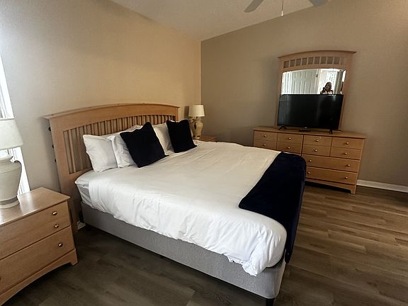 Spacious 3-bedroom, 2-bath condo available for long-term rental in the Grand Palms community of Kissimmee. This fully furnished corner unit features an open floor plan, updated vinyl flooring, and a well-equipped kitchen with full appliances. The condo also includes in-unit laundry and plenty of natural light throughout. Community amenities include a swimming pool, fitness center, and tennis courts. Conveniently located just minutes from Disney, shopping, dining, and major highways. Ready for immediate occupancy perfect for those seeking comfort and convenience in a prime location.