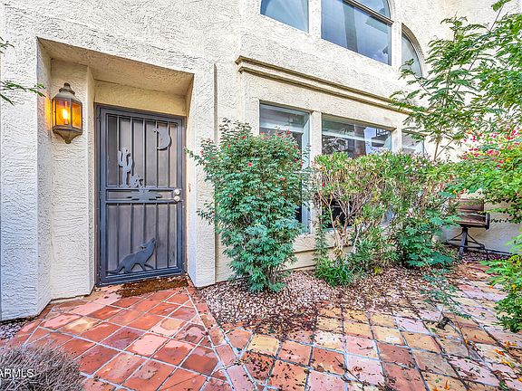 Experience modern comfort and timeless style in this beautifully updated townhouse. Step inside to a bright, open floor plan featuring soaring ceilings, abundant natural light, and elegant wood-like flooring throughout the main level. The remodeled kitchen showcases quartz countertops, upgraded cabinetry, and a clean, modern design that flows seamlessly into the dining and living areas—perfect for both entertaining and everyday living. The spacious living room centers around a striking white brick fireplace, adding warmth and character to the home. Upstairs, you'll find two bedrooms and two bathrooms, with the primary suite offering dual sinks and a tub/shower combination for comfort and convenience. A versatile office/den on the main level can also serve as an additional bedroom. Enjoy true indoor-outdoor living with a wrap-around private patio featuring a built-in BBQideal for hosting gatherings or relaxing in the Arizona sunshine. Situated beside the renowned Arizona Grand Resort, residents enjoy access to multiple pools, golf course views, and resort-style amenities, including dining and entertainment all within walking distance. With thoughtful upgrades, inviting spaces, and an unbeatable location, this home perfectly captures the essence of luxury desert living.