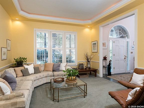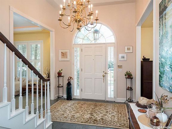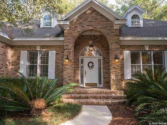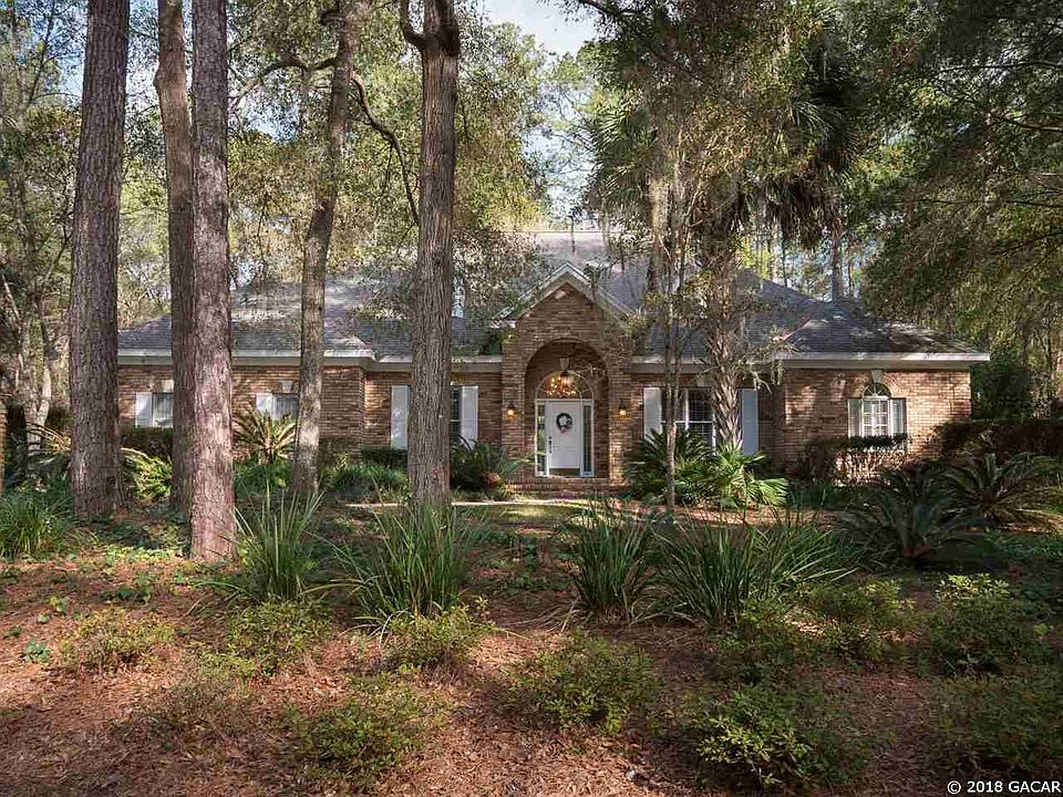 Elegant Brick Home sitting proudly on a beautifully landscaped lot in The Preserve of Haile Plantation. Walk to the weekly Farmers Market every Saturday Morning to pick up fresh produce or have dinner at one of the Village Restaurants. The updated gourmet kitchen has great storage and the perfect setup for family gatherings or an intimate candlelight celebration. A large master conveniently located on ground floor, an upstairs spacious guest room with bath, plus 3 other bedrooms will accommodate every possible need you may have. The 5th Bedroom would make the perfect office. Newly installed mildew resistant roof, high efficiency zoned h/ac makes living there easy. Complete privacy surrounds the Lavish Screened Lanai with Travertine Pavers for easy maintenance.