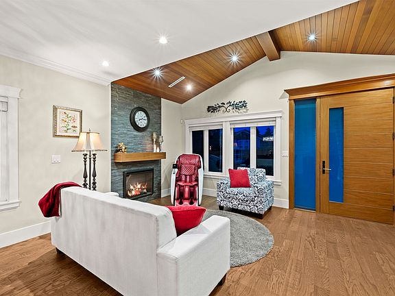 Discover timeless luxury in this bespoke, custom residence situated in a premier cul-de-sac. The exquisite design & quality construction create an extraordinary residence that meets the needs of today’s dynamic family lifestyle. Finishes include engineered hardwood floors, quartz countertops, crown moulding, radiant heating, air con, & more. Experience a spacious main level with soaring ceilings & generous principal rooms that offer an exceptional indoor-outdoor experience, with a walk-out cedar terrace + breathtaking views of the river, mountains, & city! The home offers 5 bedrooms, chefs kitchen, prep kitchen, spa-like primary suite, theatre, recreation room, & wet bar - perfect for entertaining. BONUS: One bedroom legal suite. Walk to Brooke Elementary. Sands Secondary School Catchment.