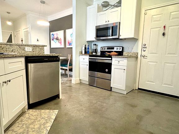 A rare find! Welcome to this charming 2-bedroom, 2-bath condo with 2 car garage, located on the 1st floor in the highly desirable Mirabella community in Orlando. Featuring an open kitchen with all stainless steel appliances. This spacious condo offers modern convenience and style. The interior boasts fresh interior paint, ceiling fans, And no carpet throughout for easy maintenance with concrete floors. Enjoy a private patio, plenty of storage, and a light-filled layout that feels both spacious and inviting.