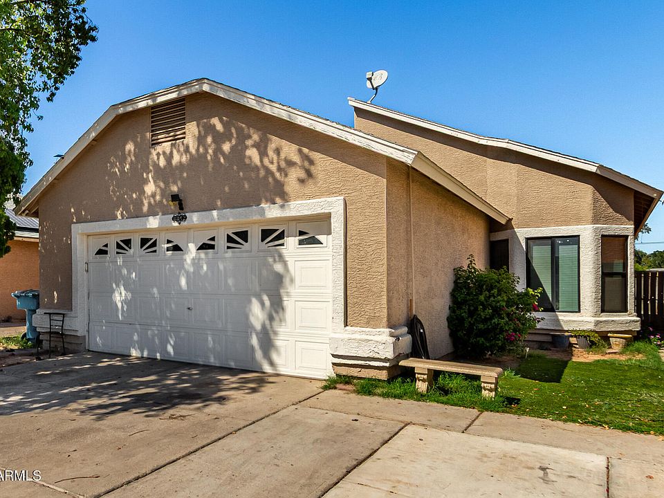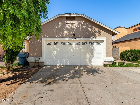 Check out this charming two-story home in a desirable Phoenix location! Providing 4 bedrooms, 2 bathrooms, and a 2-car garage. Be greeted by a large living room, which is excellent for receiving guests! Vaulted ceilings add to the airy feel, complemented by neutral paint and tile flooring throughout. Continue onto the eat-in kitchen that boasts Espresso cabinetry, a pantry, a bay window, a pass-through window, and a peninsula with a breakfast bar. Primary bedroom is downstairs, offering a walk-in closet and a full bathroom with dual sinks. One secondary bedroom is upstairs for added privacy! Out the back, you have so much potential to make a complete outdoor living space. Full cemented backyard and solar panels for reduced electricity costs! Ready to move in!