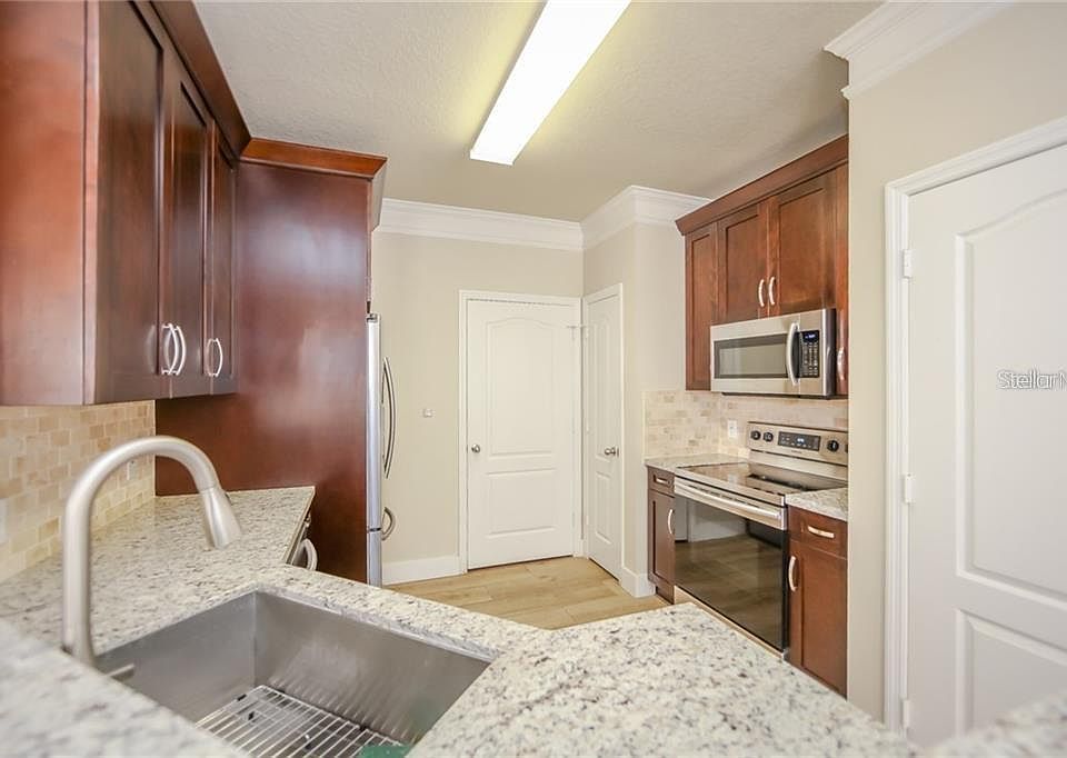 NOW IS YOUR CHANCE TO OWN TO A ONE OF A KIND 2 BEDROOM END UNIT CONDO IN THE GATED COMMUNITY OF MIRABELLA. NO EXPENSIVE WAS SPARED IN THIS COMPLETELY REMODELED GORGEOUS UNIT. UPON ENTERING YOU WILL FIND CUSTOM MAKE WOOD STAIRS THAT LEAD YOU TO THE OPEN LIVING ROOM WITH PORCELAIN WOOD TILE FLOORS THAT HAVE A PROTECTIVE EXPENSIVE SOUND PROOFING WHICH ALLOWED FOR THE ENTIRE CONDO TO NOT HAVE ANY CARPET! TOP OF THE LINE 42 INCH WOOD CABINETS WITH SOFT CLOSE DOORS AND DRAWERS WITH STAINLESS STEEL NOBS. GRANITE COUNTER TOPS,TAVERTINE BACKSPLASH, STAINLESS STEEL SINK AND MOEN FAUCETS MAKE THE KITCHEN THAT OF AN ESTATE HOME. COMPLETELY REMODELED BATHROOMS WITH WHITE SHAKER WOOD DOUBLE VANITIES AND MARBLE TOPS. ENTIRE UNIT HAS HIGH CEILINGS AND CUSTOM MADE WOOD BLINDS WITH 6 1/2 WOOD BASEBOARDS. EVEN THE RHEEM AIR CONDITIONER IS BRAND NEW WITH A WARRANTY IN PLACE. THE CONDOMINIUM HAS A CLUB HOUSE, GYM, POOL, BEACH VOLLY BALL LOCATED IN A DESIRABLE WELL KEPT AREA. THERE IS ALSO A SMALL PARTY ROOM IN THE MAIN BUILDING FOR THE RESIDENTS TO USE AND THEY CAN BRING THIEIR DOGS. THE HOA FEE INCLUDES BUILDING INSURANCE, BASIC CABLE AND MAINTENANCE OF THE PROPERTY. SEE THIS GEM BEFORE IT IS GONE. MIRABELLA IS LOCATED MINUTES TO ALL THE MAJOR THEME PARKS AND EASY ROAD ACCESS THAT MAKES TRAFFIC A BREEZE