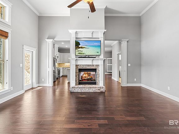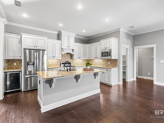 Welcome to French Settlement phase 1! This charming Gold Fortified 4 bedroom, 3 bath home boasts almost 2,800 square feet of meticulously maintained living space. When you enter the front door you'll immediately notice 14 foot ceilings, fine finish wood trim, and oversized windows. The living room contains a double sided gas fireplace, allowing you to enjoy the warmth from both the kitchen and the living room. Multiple dining areas allow you to host family gatherings, while the open concept kitchen contains a gas range, a built in wine fridge, and enough cabinet space for any occasion. All bathrooms contain both showers and tubs, and the closets are equipped with sturdy wood shelving. As you move to the backyard you'll pass through the screened in back porch and notice the immaculately maintained 8 foot deep custom gunite swimming pool equipped with a spa. Enjoy the hot Alabama summer days grilling on the back porch, entertaining under the wood pergola, or taking a dip in your new pool! Buyer to verify all information during due diligence.