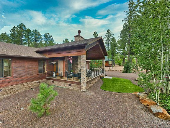 Exquisite, single level, cedar sided cabin in the desirable GATED community of Starwood Estates. Located in the back of Pinetop Country Club and surrounded by National Forest- close to hiking trails. This beautiful updated cabin features 4 bedroom (4th bedroom is being used as a formal dining room- no closet) and 2.5 baths. New flooring in bedrooms, New central A/C/Heating unit. Split floor plan. Large open great room with vaulted T&G ceilings- floor to ceiling stacked stone fireplace. Incredible chef's kitchen features beautiful knotty alder cabinets, exquisite granite, 5 burner gas stove and double oven, plus large walk in pantry. Large new trex deck in front with beautiful iron railing. New landscaping, fenced back yard. Large 2 car garage. Close to golf, skiing, and hiking trails.
