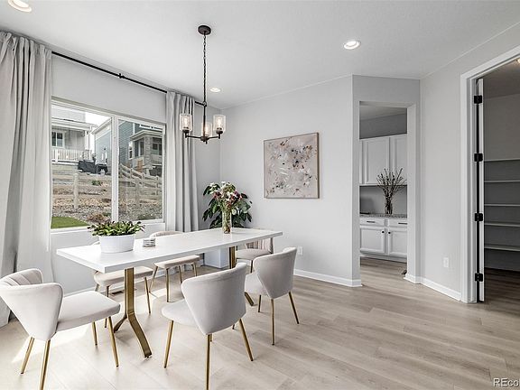Welcome to this stunning 4-bedroom residence in Ascent Village at Sterling Ranch! You are greeted by an inviting great room with soaring ceilings, an abundance of windows allowing abundant natural light, a soothing palette, and attractive vinyl flooring throughout. The chef's kitchen features sleek granite counters, ample white cabinetry, efficient recessed lighting, sleek stainless steel appliances, a walk-in pantry, and a large center island with a breakfast bar for quick meals or morning coffee. You'll also find a versatile den ideal for setting up an office or a quiet reading nook. Upstairs, a cozy loft offers a flexible area that can be used as a secondary living space or a play area. The sizeable main bedroom is complete with an ensuite with dual sinks and a walk-in closet. Discover a partially finished basement with a family room for intimate moments, an additional bedroom with a walk-in closet, a full bathroom for hosting guests, and an opportunity to design your own living space. The backyard displays an open patio for outdoor dining, pristine turf, and ample space for hosting memorable gatherings and barbecues. See this gem today! The neighborhood is just a few minutes away from Chatfield reservoir and with a 3 car garage, there is space to store a boat or other toys! Sterling Ranch is rich with walking and biking trails, and is also close to Iconic Roxborough State Park.