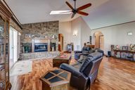 Custom built-insDramatic stacked stone fireplaceLarge laundry roomFour garage spacesEnclosed sunroomSoaring cathedral ceilingSolid surface counters