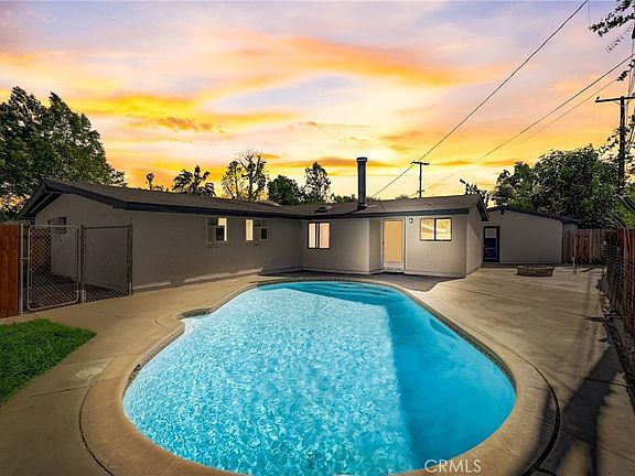 Welcome to 8845 Mentone Place in the beautiful city of Riverside. This stunning single-story residence boasts 3 bedrooms, 2 renovated baths, and vaulted ceilings adorned with a charming wood beam. Step inside your custom front door to discover new luxury vinyl flooring complemented by fresh paint on both the interior and exterior, creating an inviting atmosphere throughout. Enjoy the warmth of a wood-burning fireplace in the spacious living room, perfect for cozy gatherings. The kitchen features granite countertops and brand-new stainless steel appliances, making meal preparation a delight. Outside, soak up the California sunshine in your private built-in swimming pool, surrounded by lush landscaping. Additional highlights include an oversized 2-car detached garage, offering ample storage space for all your needs. With a prime location near California Baptist University, UC Riverside, Tyler Mall, Buccaneer Cove Water Park, and Indian Hills Golf Club, this home offers a lifestyle of unparalleled convenience. Don't miss the chance to make this yours – a true haven close to everything you love!