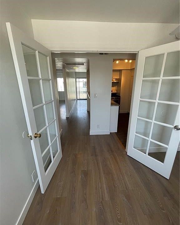 Gorgeous Contemporary two-bedroom + bonus room, condominium features: Beautiful laminate floors and baseboards in living room, hallway, bedrooms, and bonus room; Recessed lighting in living room; Sliding glass door to a beautifully tiled in large balcony overlooking pool, courtyard with huge shade tree; The kitchen includes; granite countertops, stainless dishwasher, stainless gas range, stainless range hood, and a stainless sink, contemporary Shaker style soft closing type cabinets, pendant lighting, and a fully adjustable design ceiling light in tray ceiling; Beautiful French doors lead to a brightly lighted bonus room filled with possibilities (dining, home office, nursery, sunroom); The bathroom is unique as it is made up of a tub with the similar tile as its space-saving vanity and sink; The two bedrooms have light illuminating mirrored sliding closet doors. Onsite Community laundry and pool. In addition, the property includes two assigned parking spaces, ensuring convenient and secure parking. Nearby schools include Alta California Elementary, Vista Middle School, James Monroe Senior High, Northridge Academy Senior High, and Valley Academy of Arts and Sciences. The property is also a short distance from Panorama Mall, grocery stores, and medical and dental facilities. Easy access to the 405 freeway, shopping centers and grocery stores.