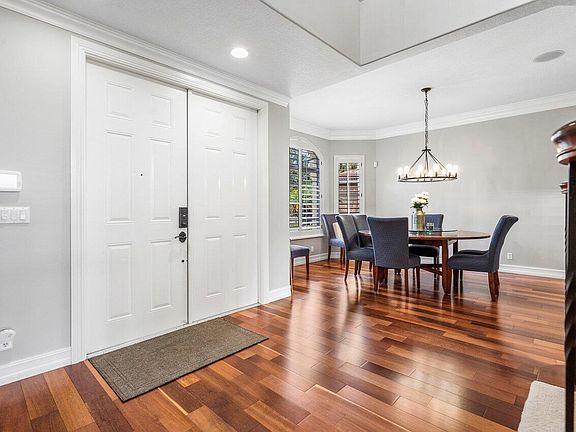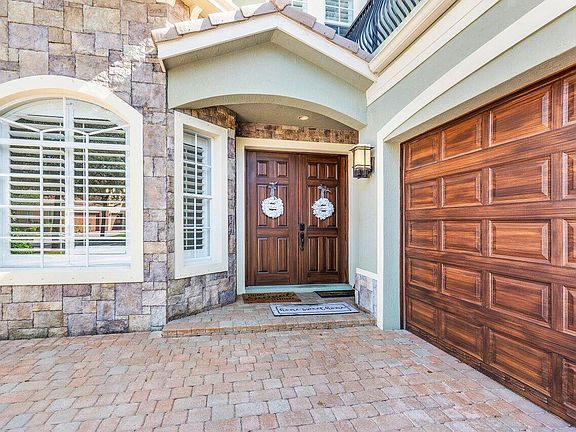 Welcome home to this magnificent home in Cobblestone Creek! Enjoy the perfect floor plan featuring main floor primary bedroom suite and split bedroom plan upstairs including 4 bedrooms and 3 bathrooms with a large loft. Easy living with bamboo floors downstairs, fresh interior paint, beautiful molding throughout, plantation shutters and most windows hurricane impact. Great entertaining home with living area and kitchen leading to covered patio, built in surround sound music system, resort like salt water, heated pool with beach entry, LED lights, fountain and exquisite view of the lake from large pool deck and oversized private yard. A-rated schools and brand new middle school and high school opening soon. Just a short walk to newer shopping center with restaurants, shops and fitness.